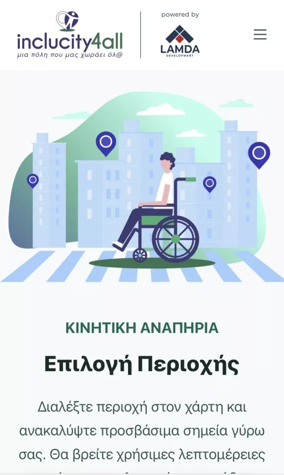 Το inclucity4all είναι η εφαρμογή που έχει σκοπό να κάνει την καθημερινότητα των ανθρώπων με οπτική και κινητική αναπηρία πιο εύκολη και λειτουργική, προσφέροντας χρήσιμες πληροφορίες που ενισχύουν την αυτονομία, την ισότιμη συμμετοχή και την πρόσβαση σε σημεία και υπηρεσίες των Δήμων της Αττικής.